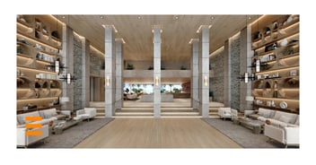 Proyecto: ArtHouse - Amenidad con pisos de mármol y techos con acabado de lambrin
